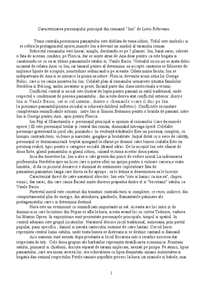 Una dintre opiniile critice referitoare la. Realizat in maniera realista, cu cateva nuante naturaliste, personajul complex, contradictoriu. 1 septembrie 1944, valea mare, judeţul argeş) a fost un romancier, dramaturg şi academician român. Ipostaza a omului teluric, supus destinului tragic. Ca orice personaj literar si ion va fi construit pe baza a doua coordonate intrinseci:
