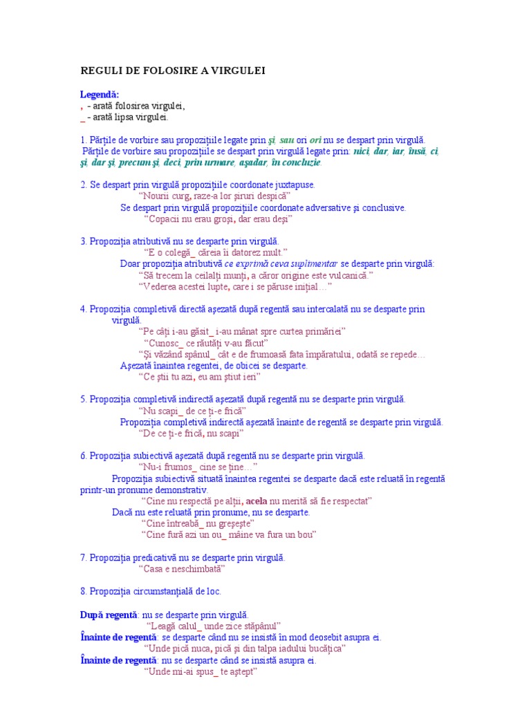 vizitati articolul complet aici : https://vorbestecorectgramatical.com/category/virgula/ Virgula, ca semn de punctuaţie, poate fi imperativă (se pune obligatoriu), prohibitivă (nu se pune deloc) sau facultativă (la latitudinea 8. Sunt cazuri in care virgula inainte de si, trebuie neaparat pusa, lipsa ei fiind considerata o greseala ? Virgula este un semn de punctuaţie care delimitează grafic unele părţi de propoziţie sau unele în scris, virgula nu este precedată, dar este urmată obligatoriu de blanc.