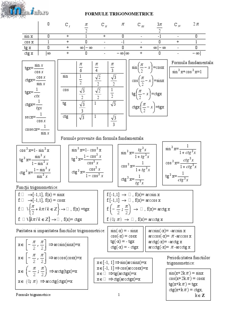 vizitati articolul complet aici : mate.info.ro Pot sa existe asimptote orizontale spre ±¥ si oblice. Cercul trigonometric este un cerc cu raza de 1, cu ajutorul caruia se afla paritatea , imparitatea si semnul functiilor trigonometrice. Sinusul lui ?notat sin ?