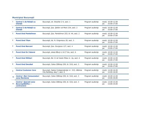 Date contact enel energie muntenia sa. Puoi ricevere tutte le informazioni che desideri ed entrare nel mondo enel energia chiamando il numero verde 800900860 dall'italia o +39 0664511012 dall'estero, a pagamento al costo applicato dal tuo operatore telefonico. 24387371, j40/14506/2008, din sector 3, bucuresti.