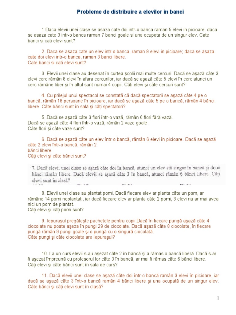 vizitati articolul complet aici : https://forum.anidescoala.ro/viewtopic.php?t=3263 A cati elevi si cate banci sunt in clasa. Dac se aaz cte 3 elevi cerc rmn 8 elevi n afara 23. Profesorul o întreabă pe o elevă: