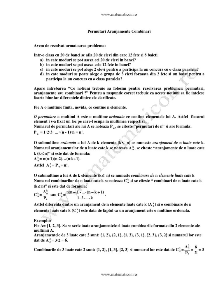 Combinatii De N Luate Cate K : Se Numeste Combinare De N Elemente Luate Cate K Orice Submultime Cu K Elemente Alese Dintre Cele N Elemente Ale Unei Multimi Pdf